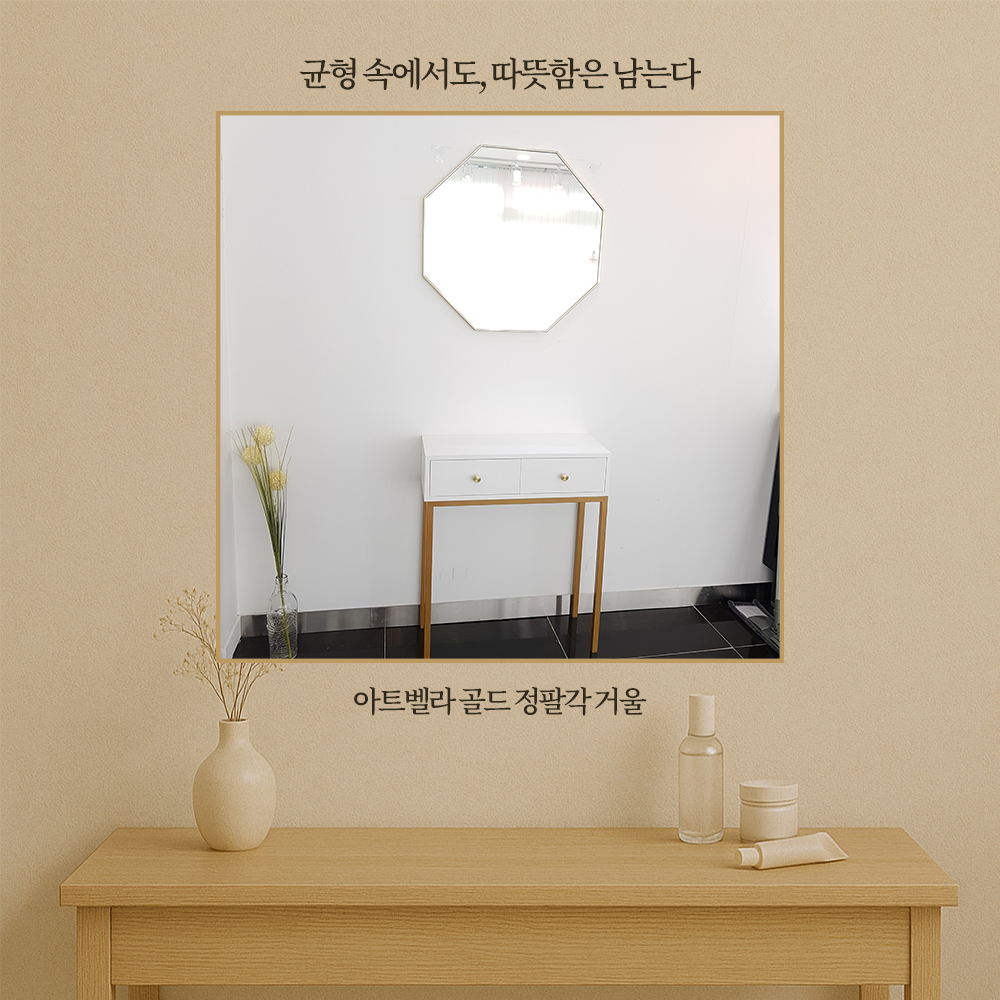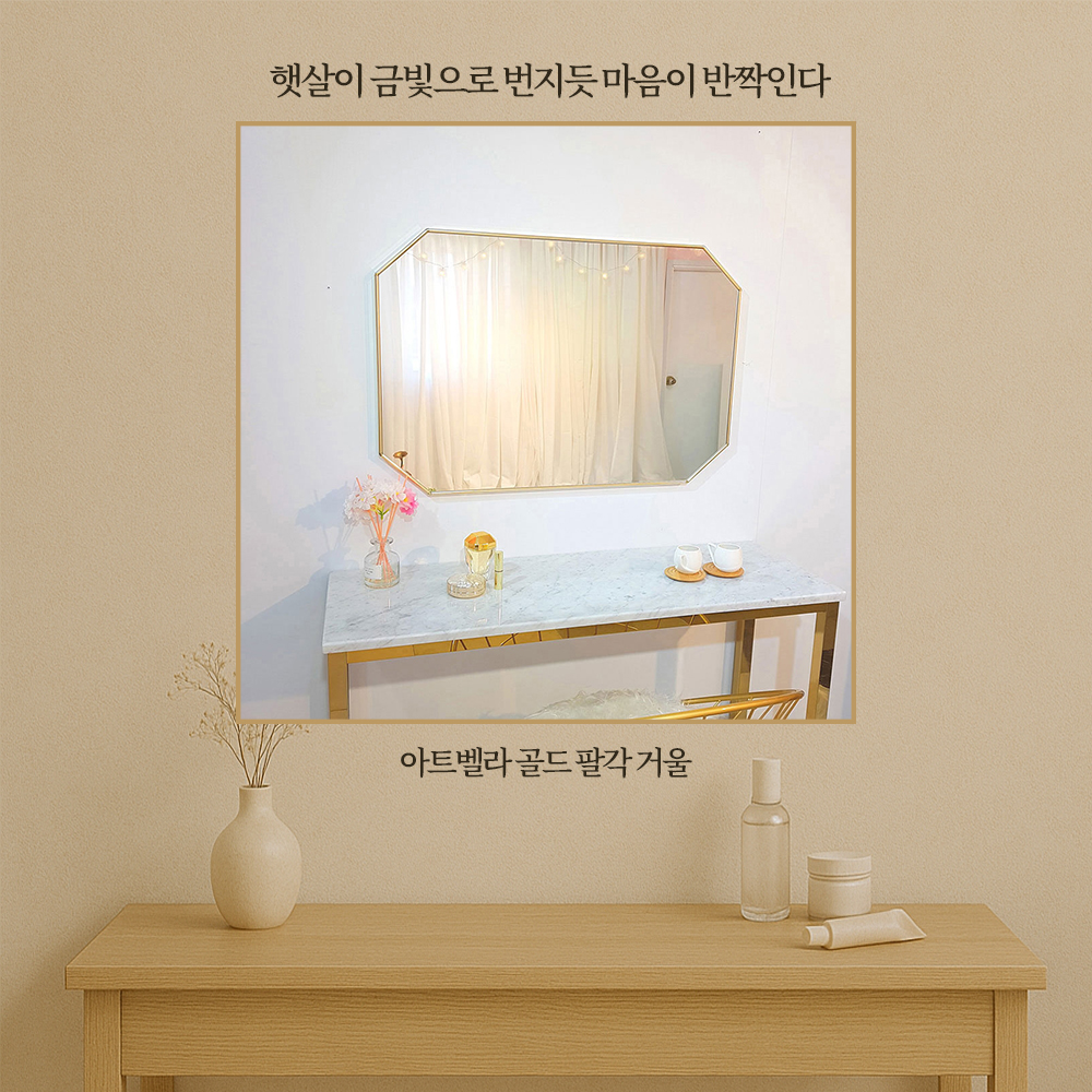 대형화장대거울로 제작된 대형 팔각 골드 거울은 빛을 넓게 확산시켜, 방 안 전체를 아늑하게 감싸줍니다.