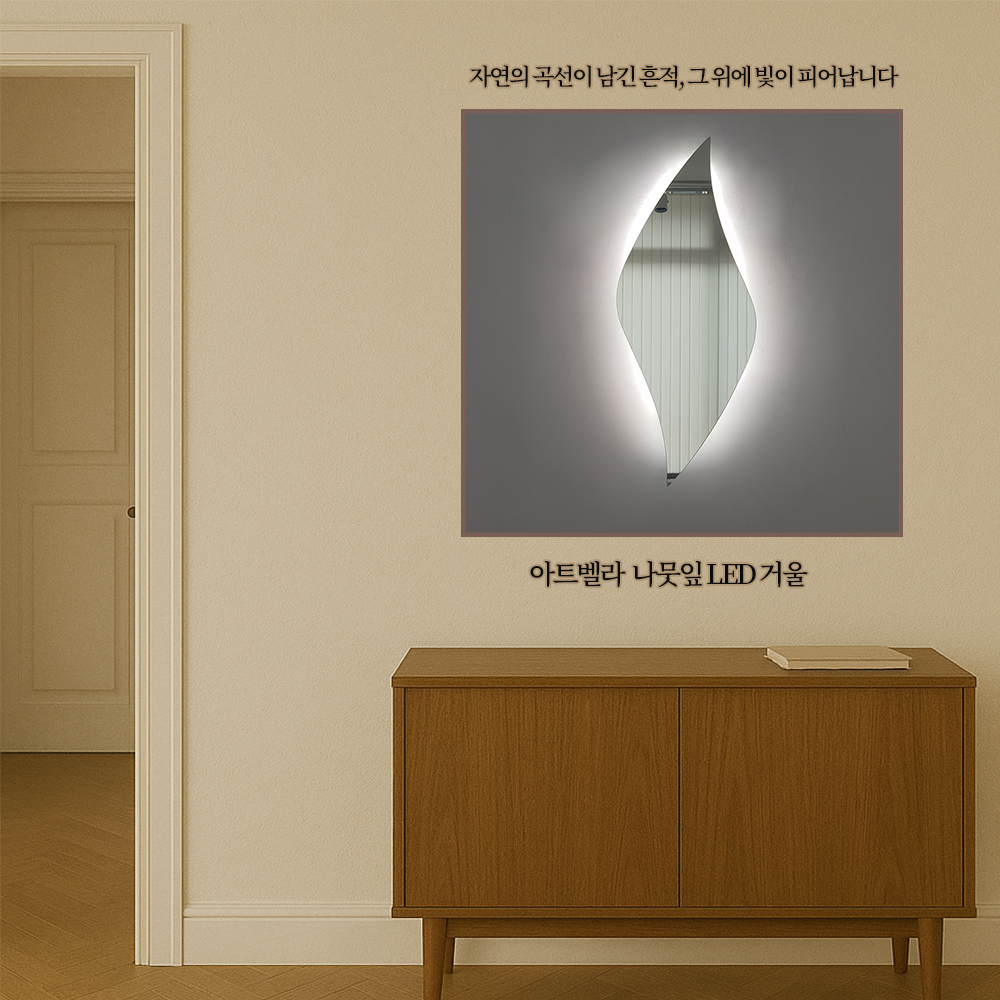 거실간접LED거울을 단순히 조명 제품이 아닌, “공간 감성의 중심”으로 제안하고 있습니다.