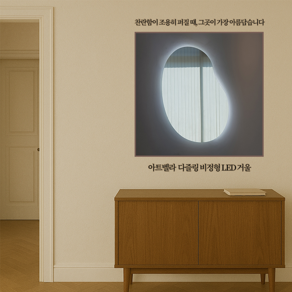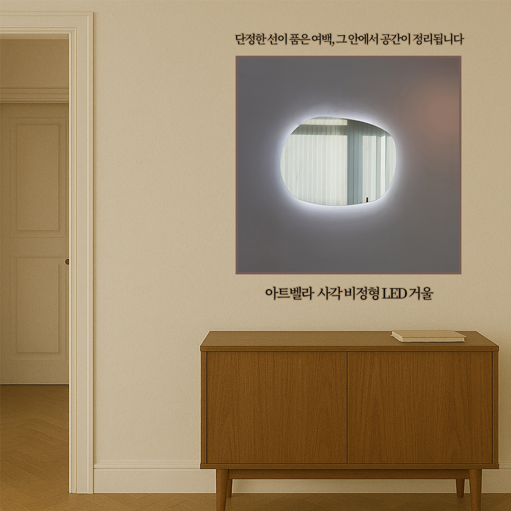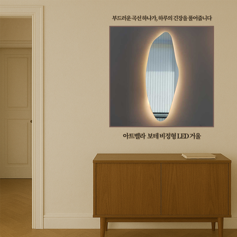 그래서 거실LED거울은 단순한 인테리어 소품이 아니라, 공간의 감정을 정리해주는 장치가 됩니다.