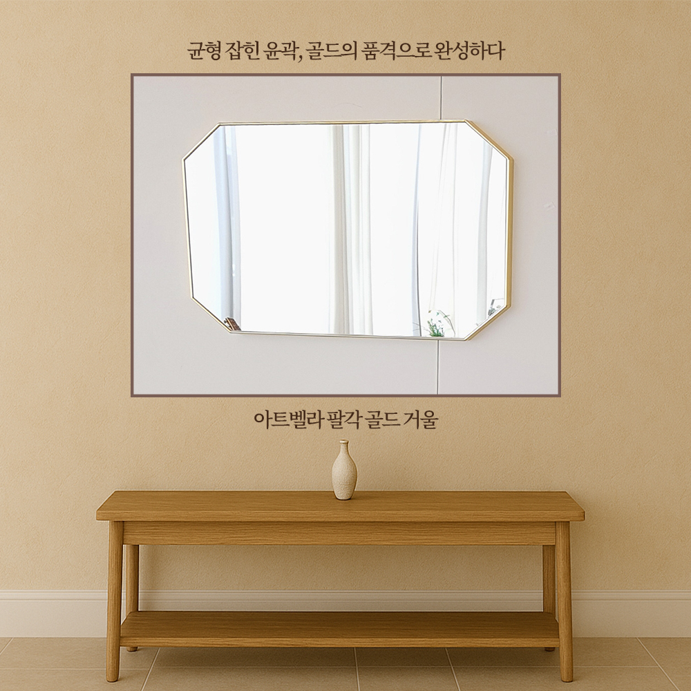 골드 프레임이나 팔각 형태처럼 균형이 잡힌 거울은