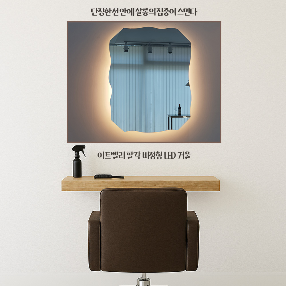 벽면에 설치된 헤어샵조명LED거울은 단순한 반사 도구가 아니라,