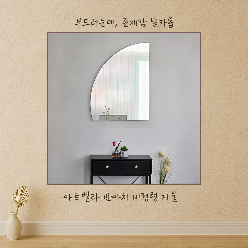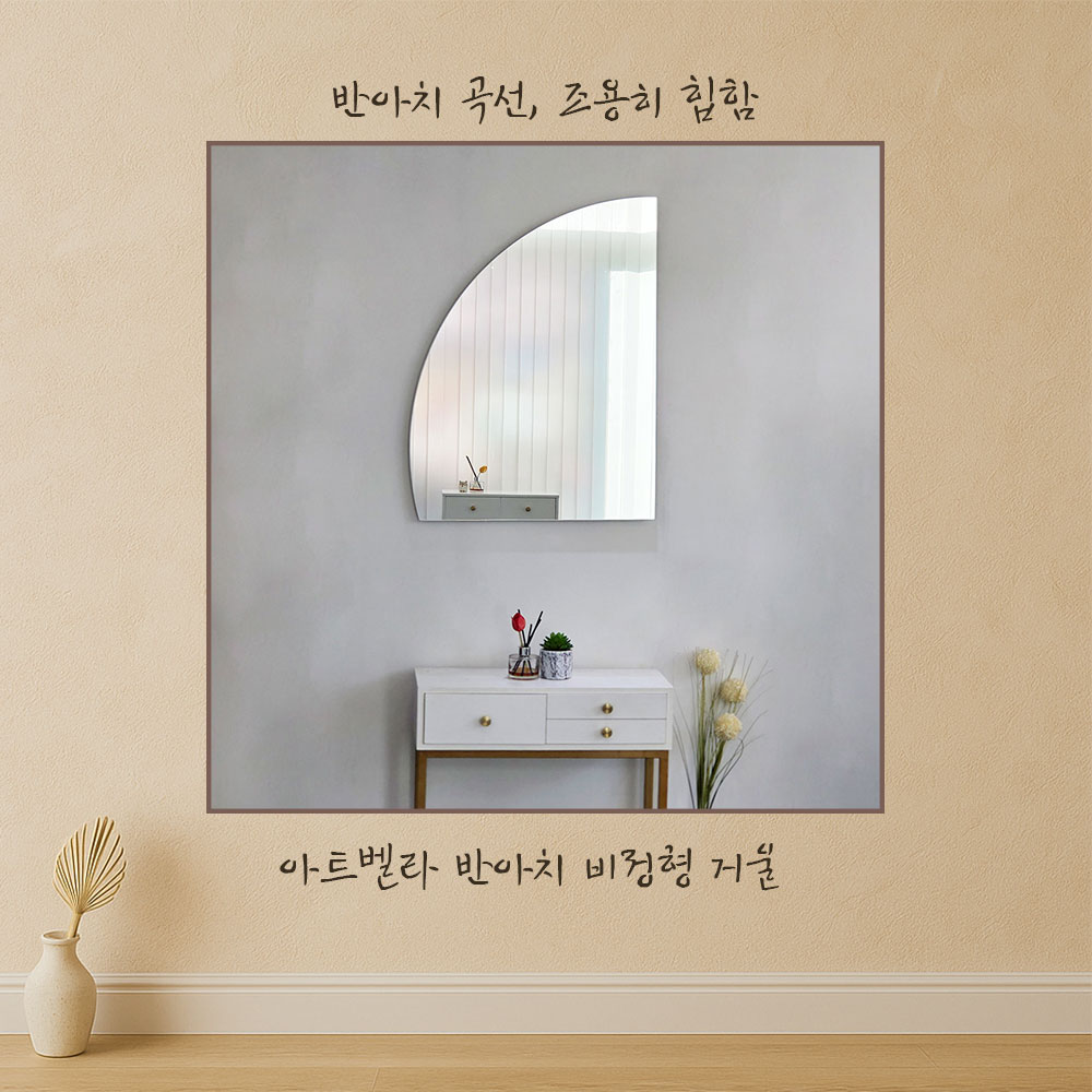 “반아치 비정형 거울, 벽 감성 종결.”