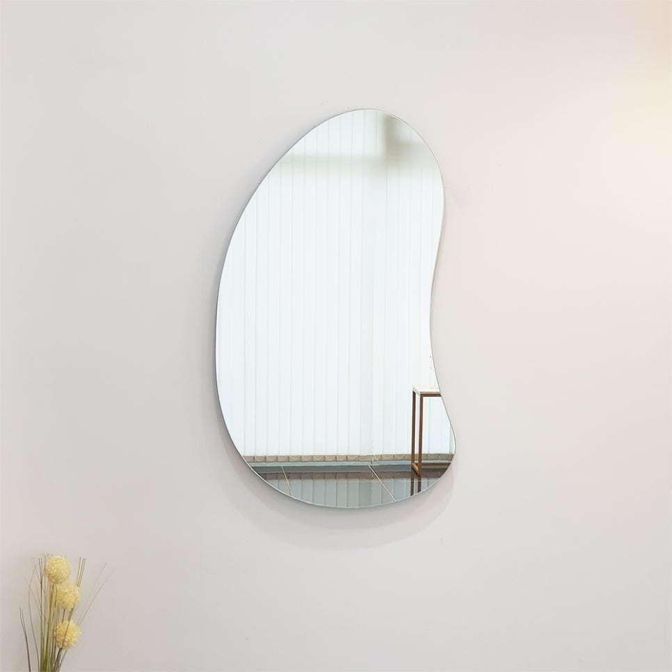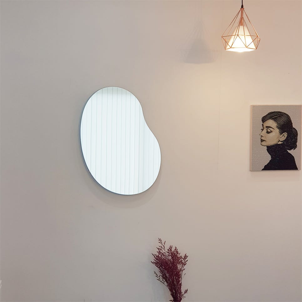전체적으로 ‘곡선의 흐름’이 자연스러워서 처음 비정형 인테리어벽거울을 선택해보는 분들이 많이 찾는 디자인이에요.