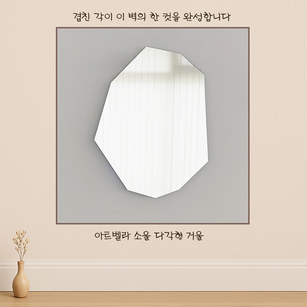 거실벽거울로는 벨라, 바위, 씨엘로, 소울 다각형 같이 실루엣이 분명한 타입이 잘 어울립니다.