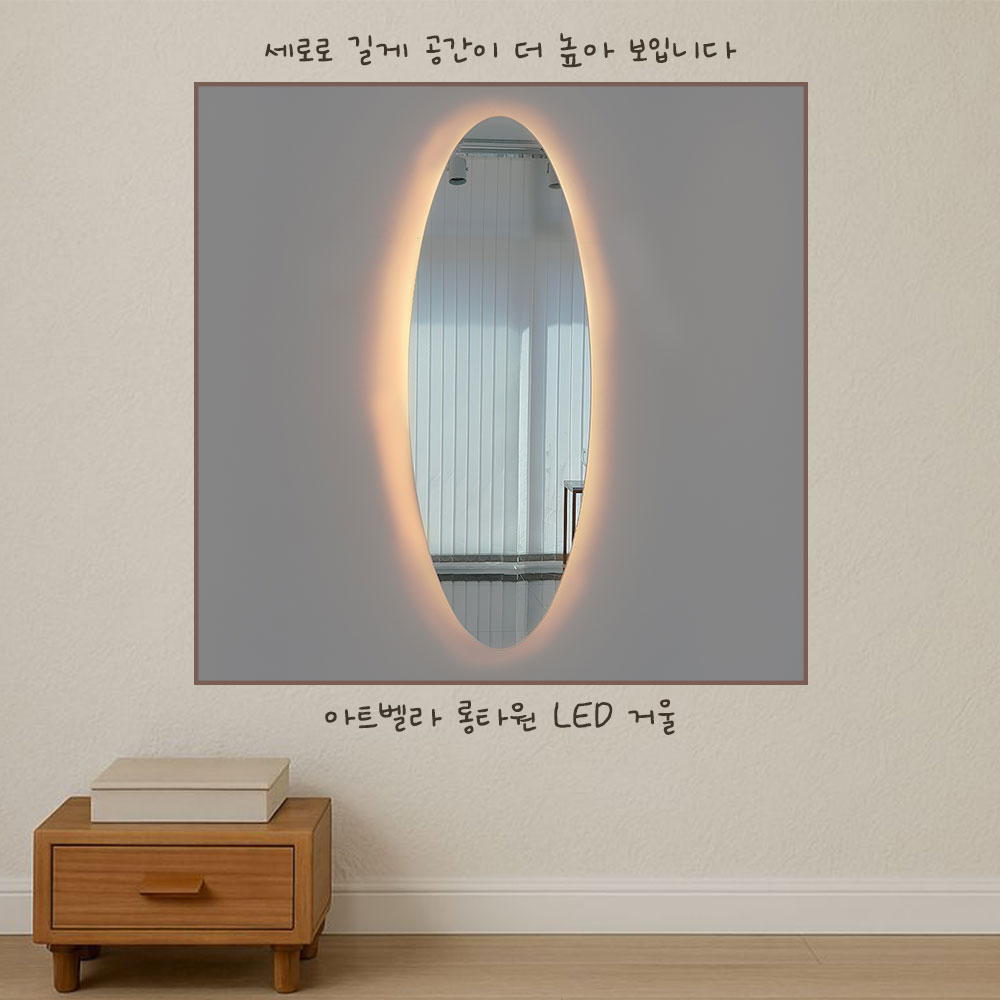 전신 느낌을 내고 싶다면 세로 비율이 긴 형태가 유리하고, 그래서 아파트거실조명거울에서도 롱 형태가 자주 선택됩니다.