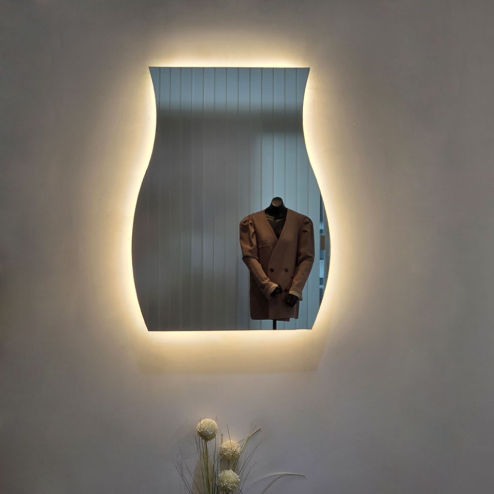벽면에 은은한 빛이 퍼지는 조명 거울이 있으면 발걸음이 잠깐 멈춥니다.