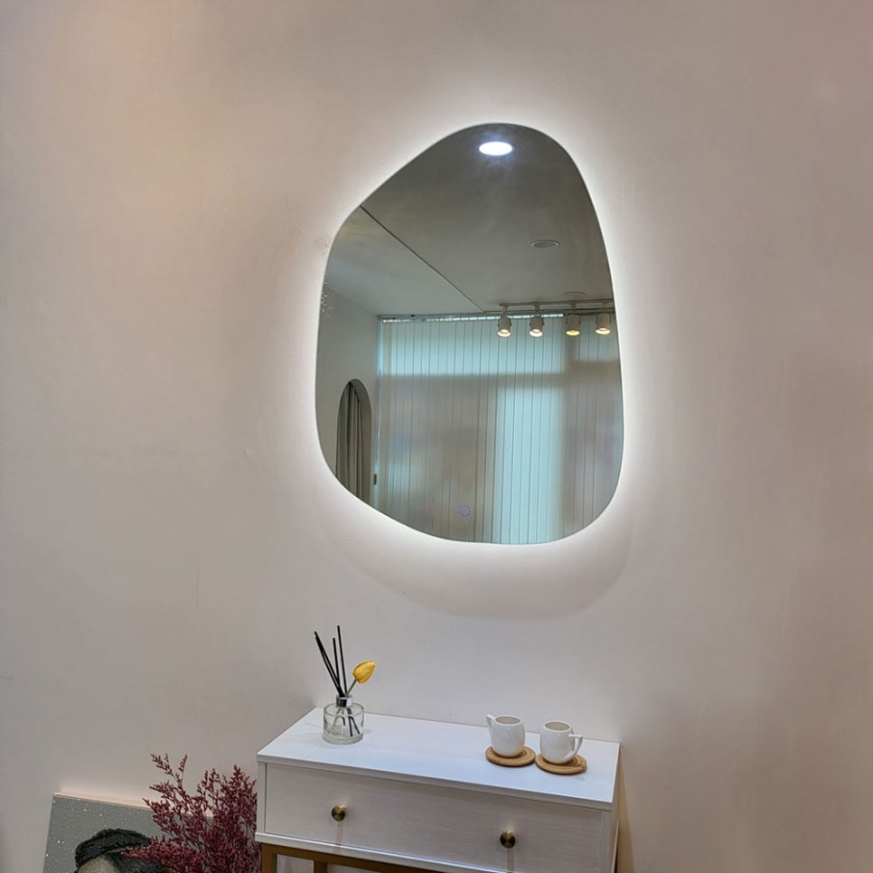 그때 거울이 곡선이나 자연형 실루엣이면 공간이 갑자기 편안해져요.