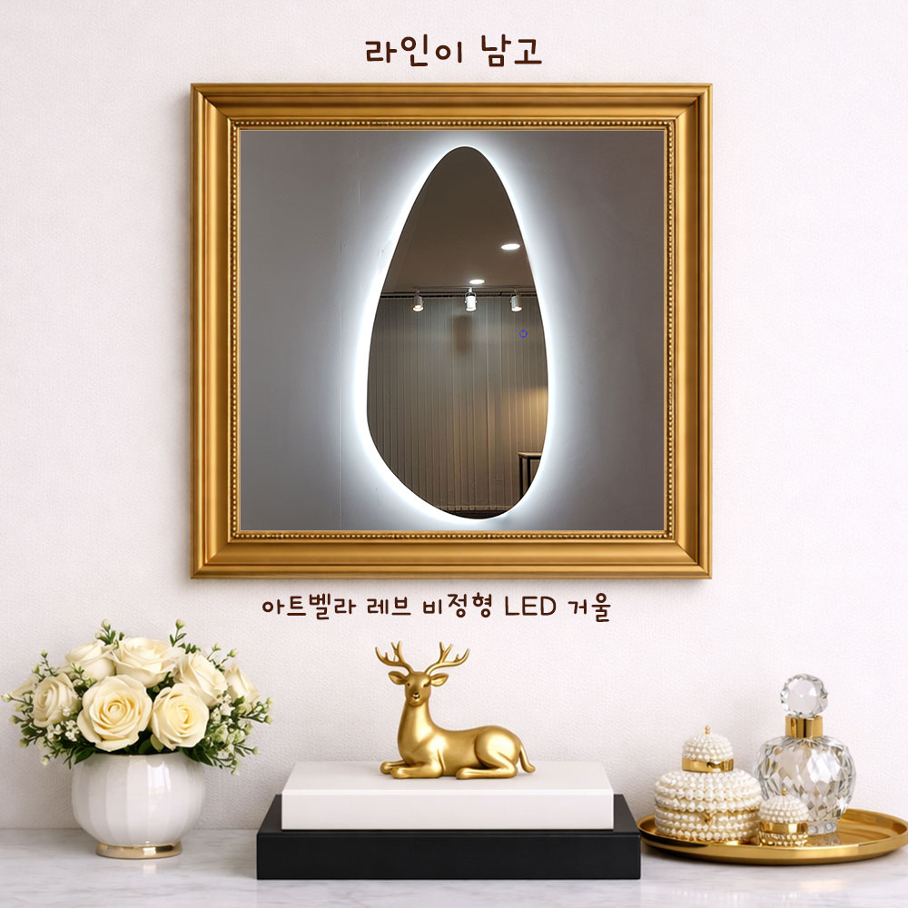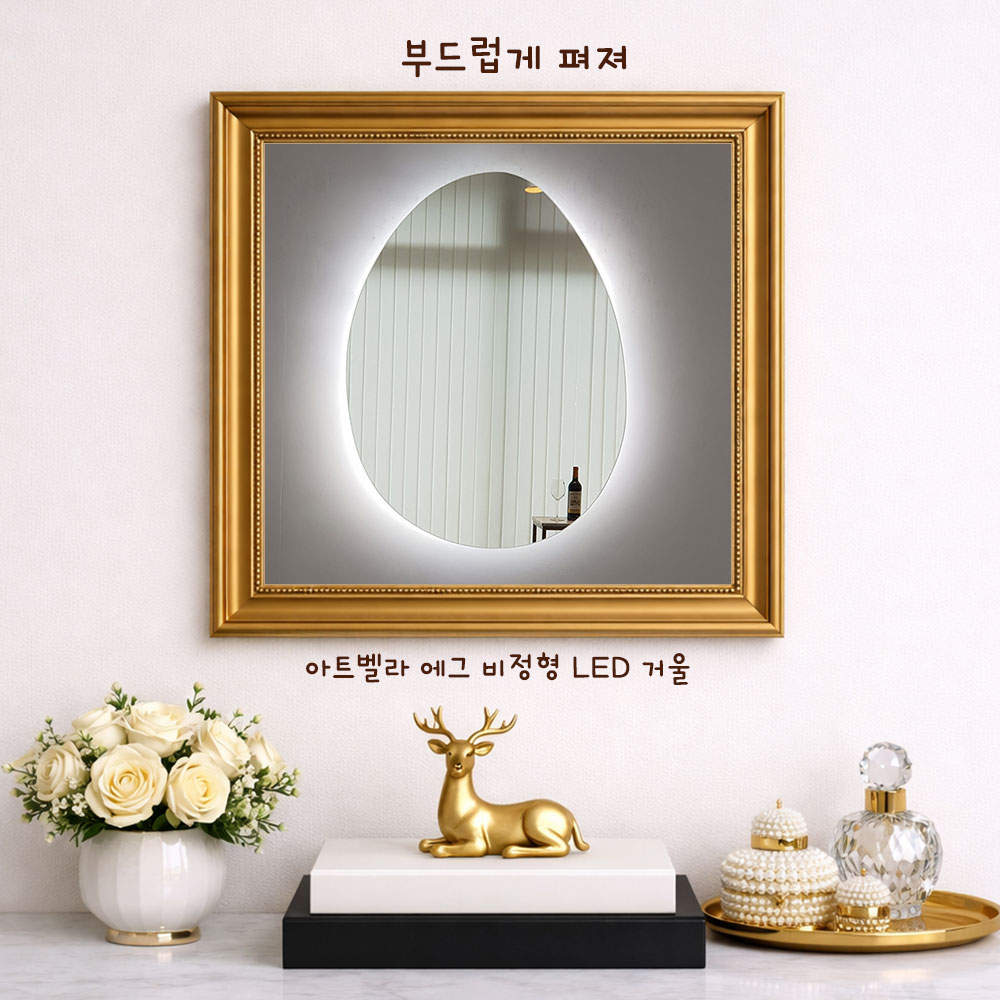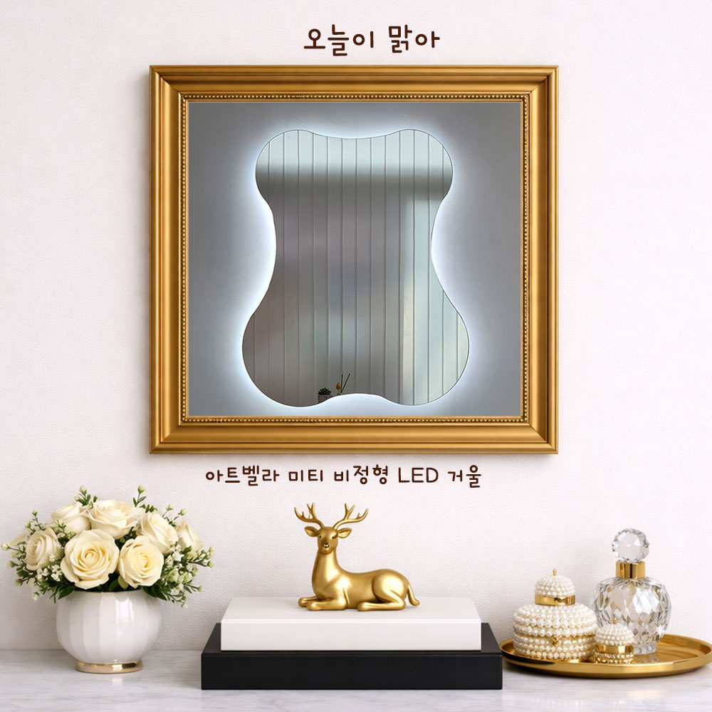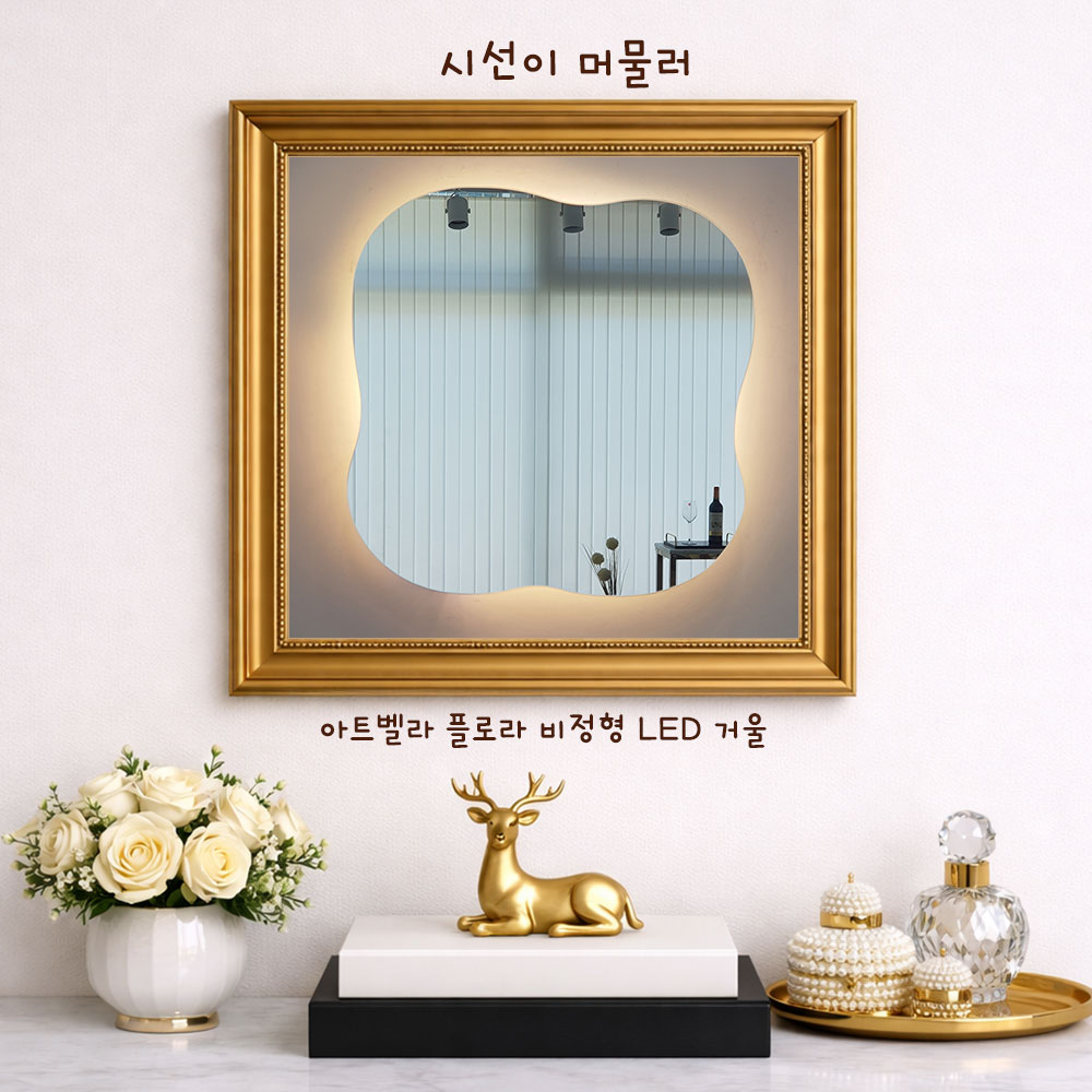 요즘은 비정형조명거울 처럼 감각적인 형태를 찾는 분들이 많아요.