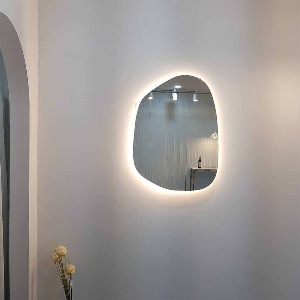 살짝 자연스러운 선이 들어간 비정형욕실거울에 관심을 두는 경우가 많아요.