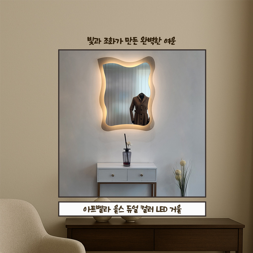 프리미엄 거울 브랜드 아트벨라 / 인테리어 거울 / LED 거울 / 듀얼 컬러 LED거울 / 비규격 맞춤 주문 제작 전문